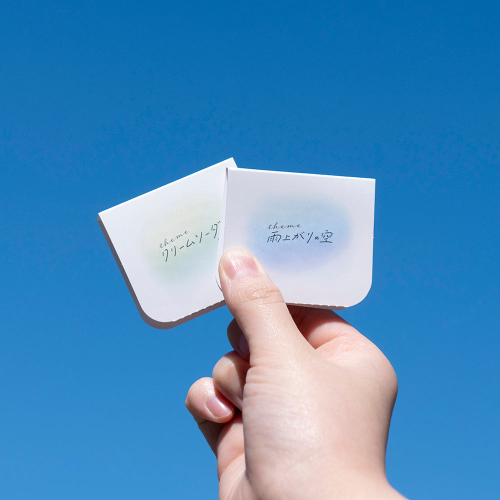 角のまるみがかわいくて、ちょこっとメモにちょうどいいサイズ感。