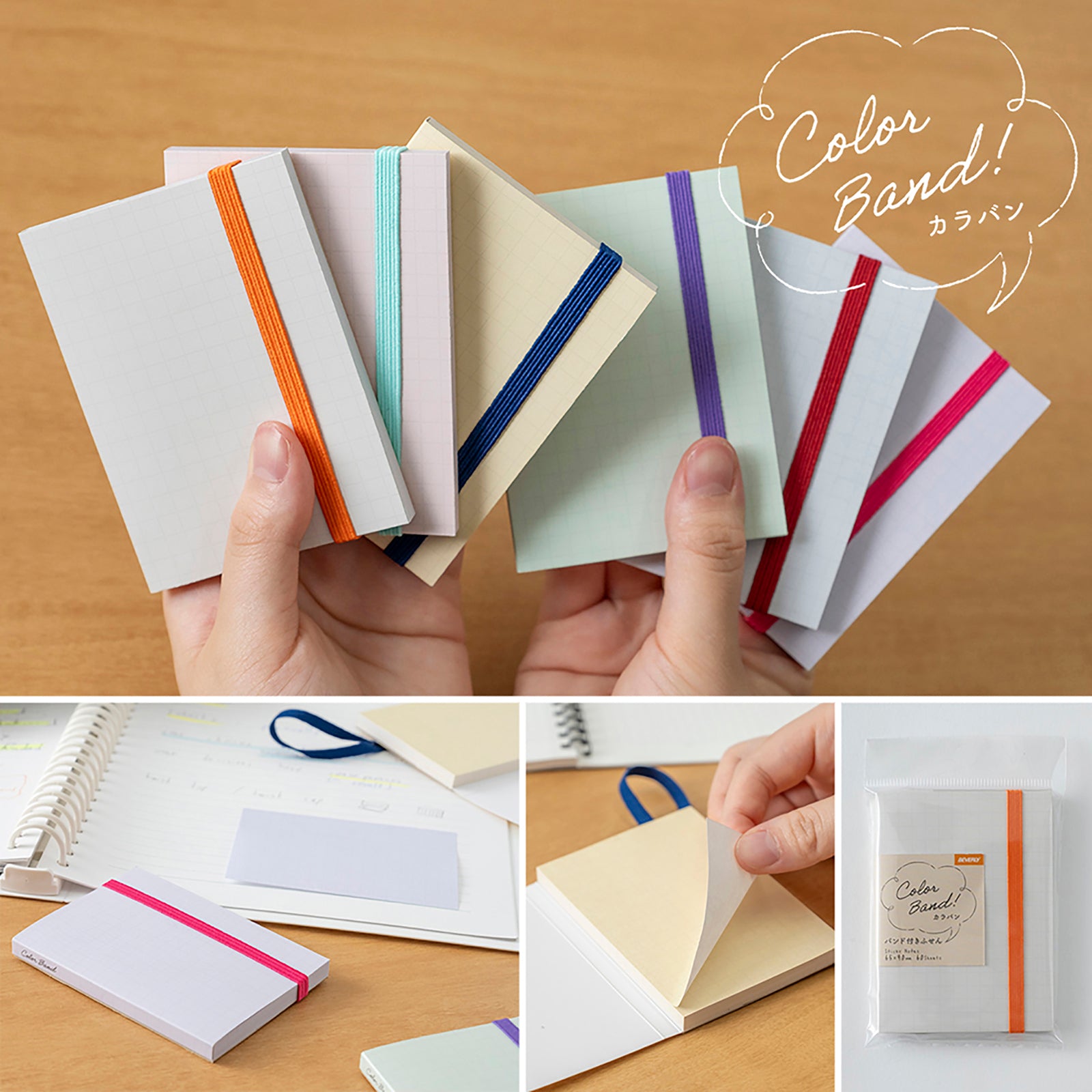 カラーバンドが付いた手のひらサイズのおしゃれなグリッドふせん【カラバンふせん】が新発売!