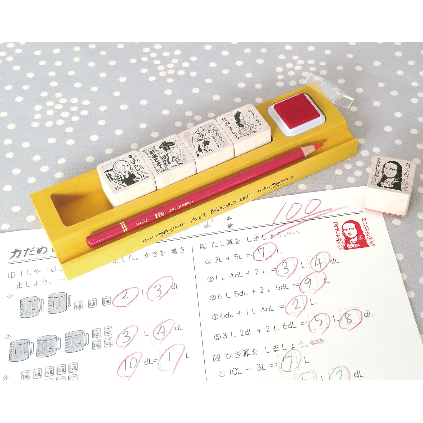誰もが一度は目にした事があるような美術作品をモチーフにしたイラストが楽しい評価印です。「これみたことある!」「これは誰?」といったように、子ども達とのコミュニケーションのきっかけにも。
