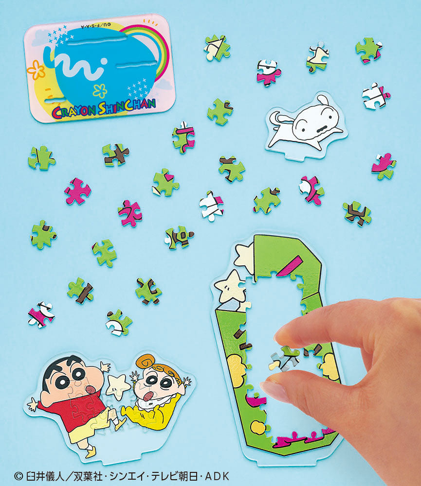 アクスタポップは、2枚のパズルと1枚のパーツを組み合わせアクリルスタンド風にディスプレイして楽しめます。